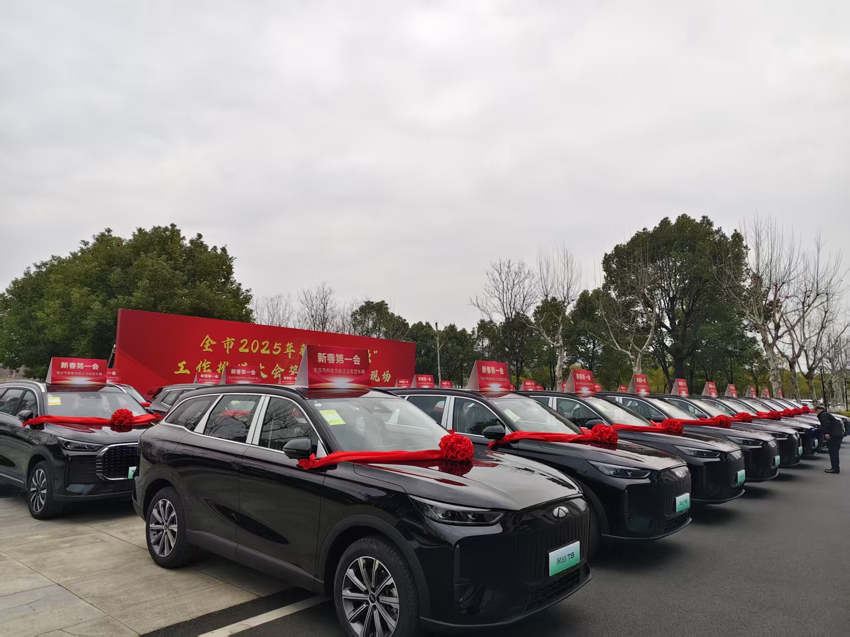 安徽润泰羽绒制品有限公司在安庆市委、市政府组织举办的“全市2025年新春冲百强工作推进大会”上荣获2024年度安庆市税收贡献30强企业,获得奖励新能源汽车一辆。